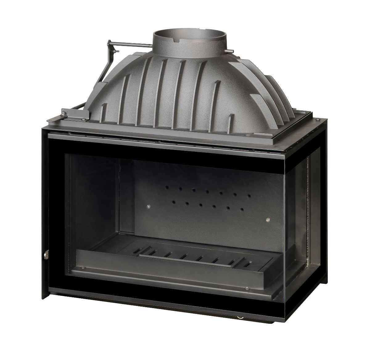 Le système vitre propre permet de ralentir l’encrassement du vitrage. Une arrivée d’air sur le haut de la vitre crée un voile de protection. L’ air préchauffé est propulsé le long du vitrage. Il déclenche la combustion des gaz et des matières volatiles protégeant ainsi la vitre contre la fumée et le dépôt de suie.