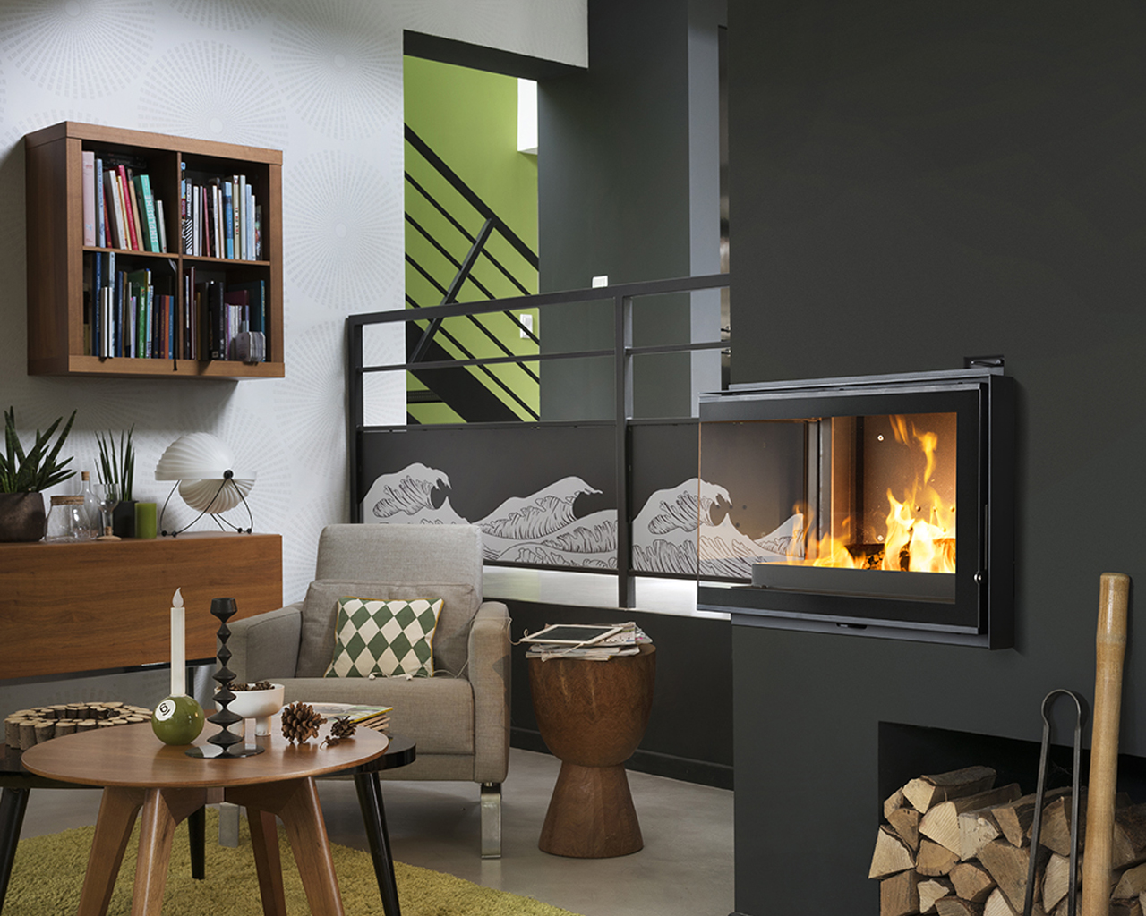 Pourquoi faudrait-il toujours être devant le feu pour en profiter ? Fini les privilèges, tout le monde est logé à la même enseigne, le feu crépite de face et sur le côté ! Ce foyer d’angle donne une dimension supérieure à la magie du feu.