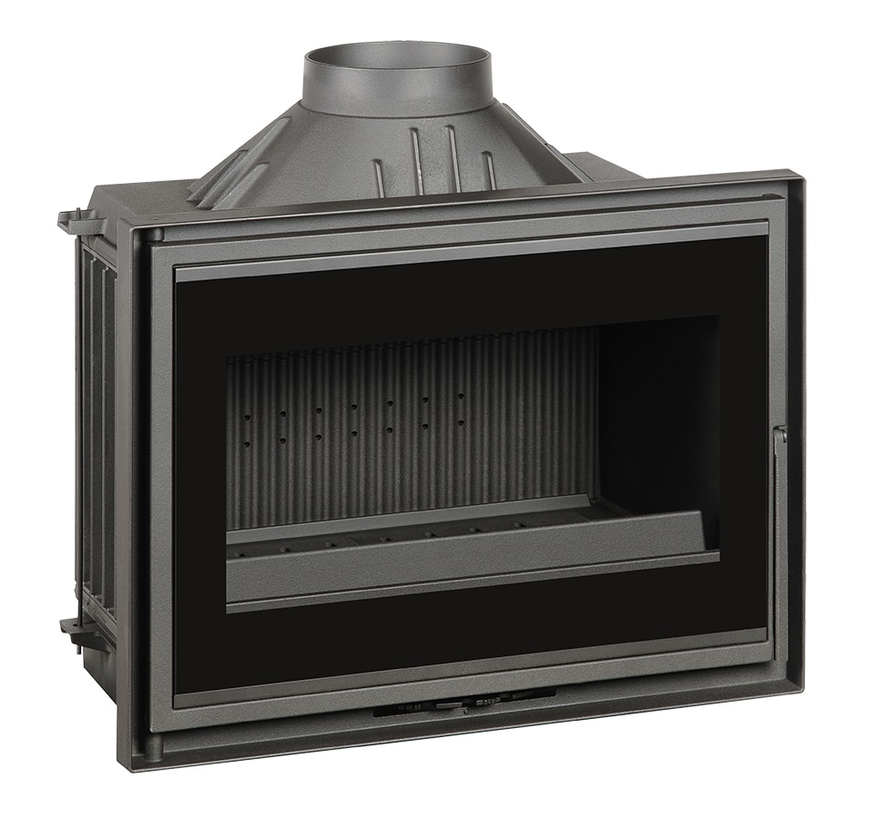 Vitre sérigraphiée positionnée à l’extérieur de la porte offrant un style moderne et une belle vision des flammes.