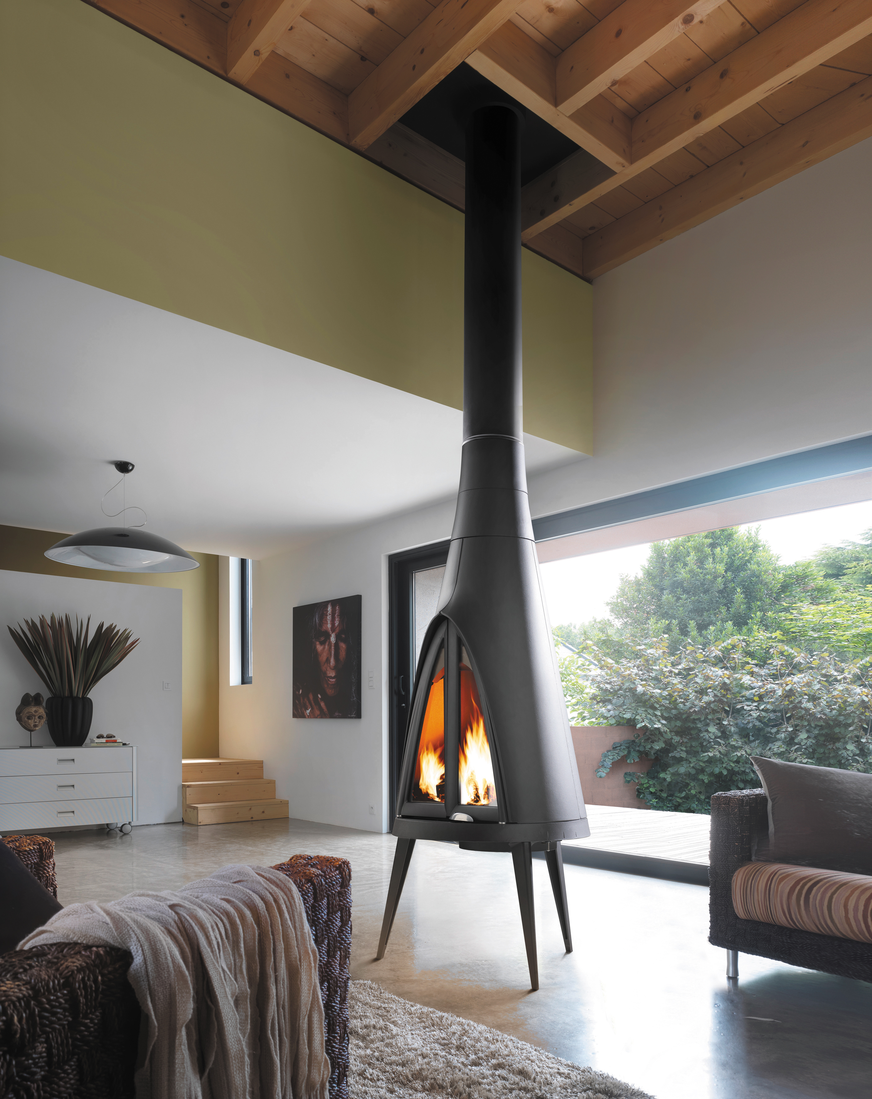 Possibilité de profiter d’un feu à l’âtre traditionnel. L’appareil est conçu pour éviter le refoulement de fumées lorsqu’il fonctionne portes ouvertes. Il faut néanmoins respecter au préalable des conditions d’installation.