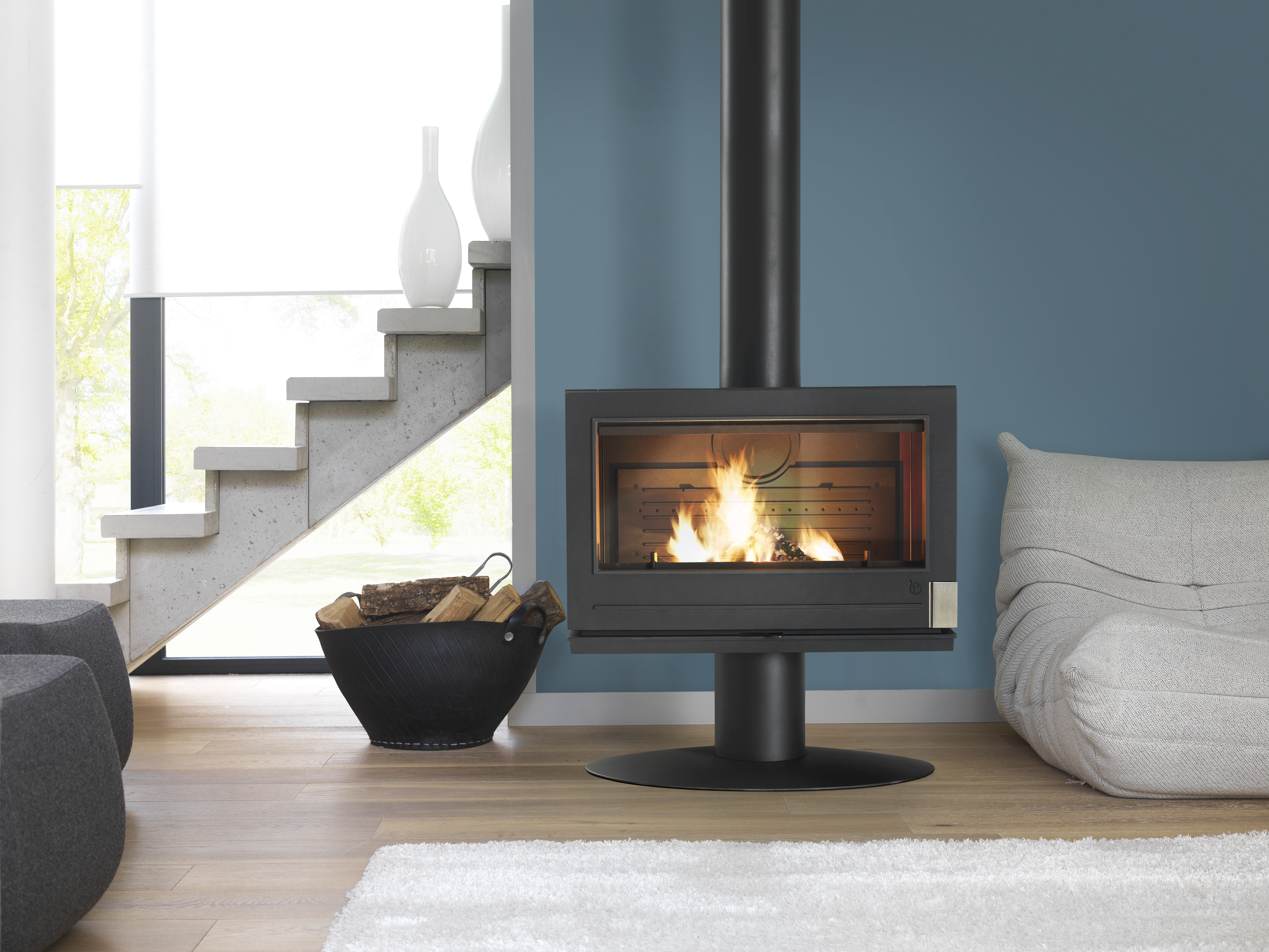 Le système vitre propre permet de ralentir l’encrassement du vitrage. Une arrivée d’air sur le haut de la vitre crée un voile de protection. L’ air préchauffé est propulsé le long du vitrage. Il déclenche la combustion des gaz et des matières volatiles protégeant ainsi la vitre contre la fumée et le dépôt de suie.