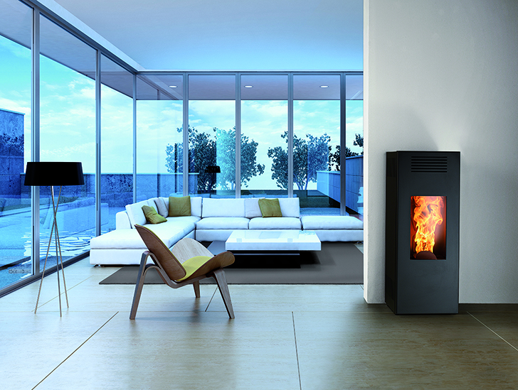 Poêle au design minimaliste, le poêle Rubia dispose d’une large porte mettant en valeur ses formes géométriques.